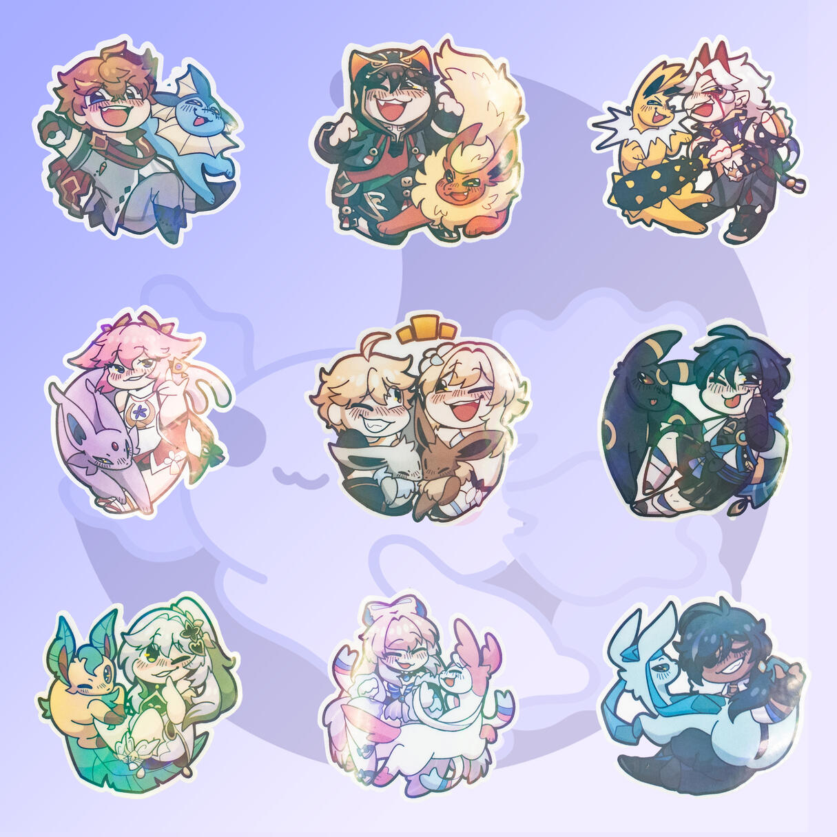 Naklejki | Naklejki Genshin x Pokemon | Breloki | Przypinki